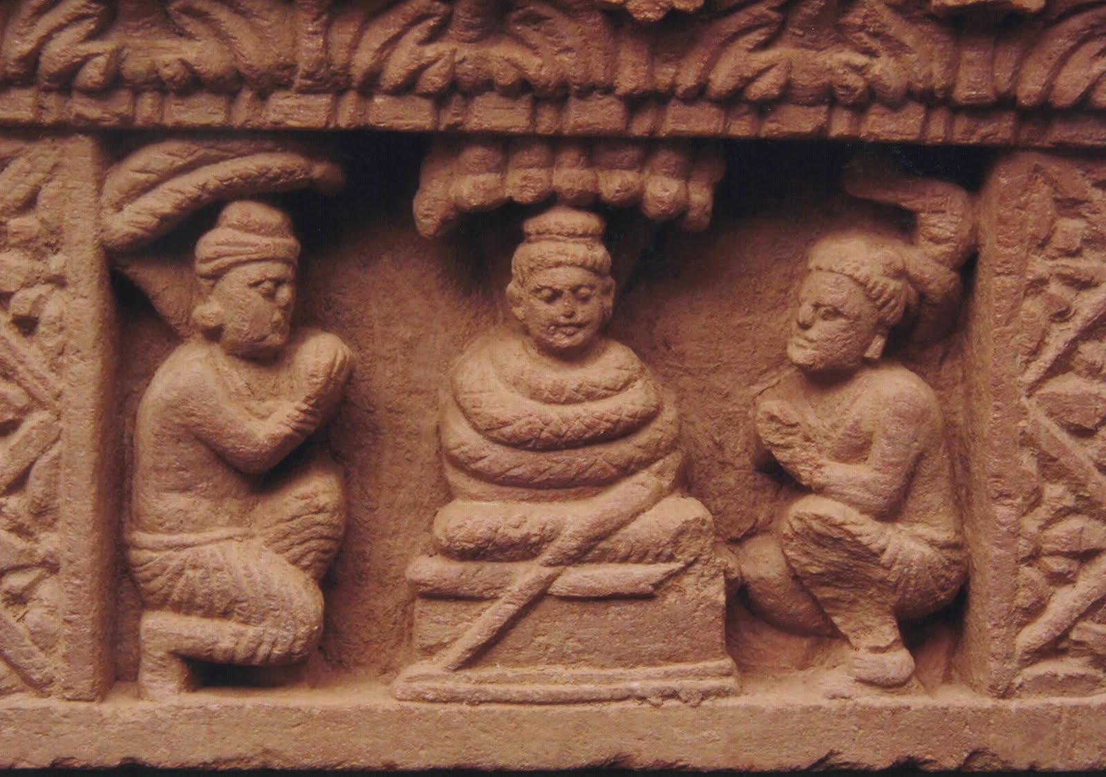 | Встречается и такое изображение, когда змей Нага полностью обвивает тело Будды. Гандхара. |